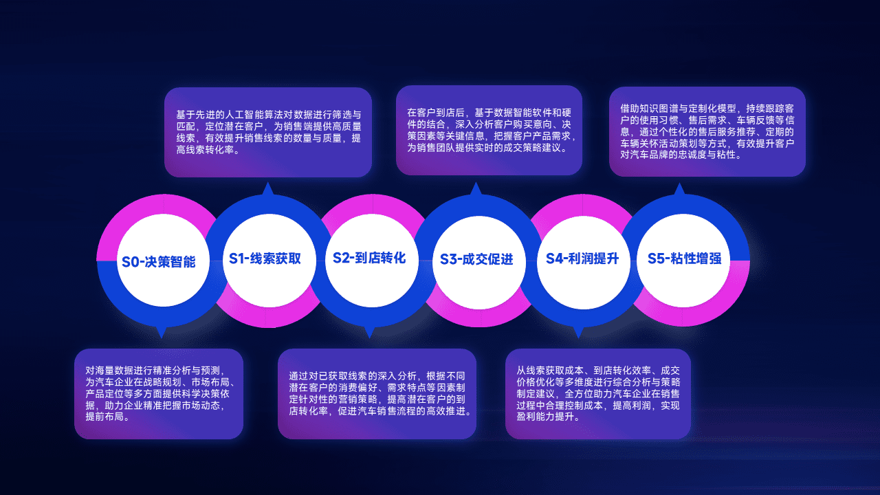 通过拓宽潜在客户来源、、、优化线索分配并提高到店转化率,,以增强销售效率。。。。同时,,利用线索数据不断优化分析模型,,,,有效提升转化率,,,扩大营销影响力。。。